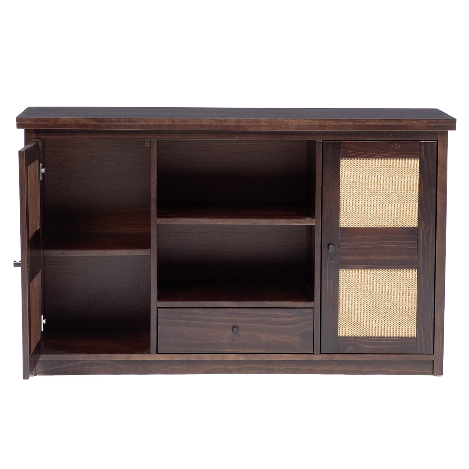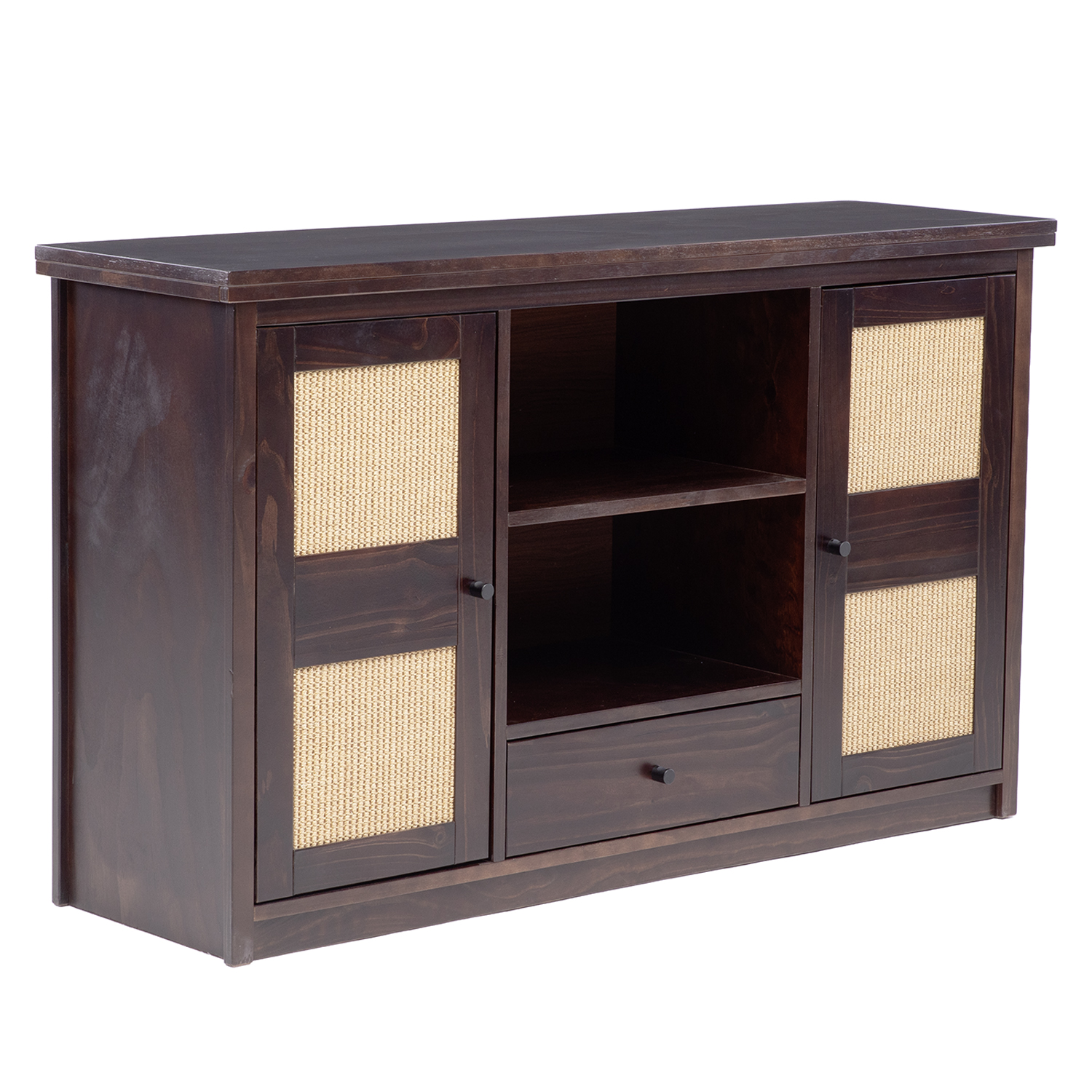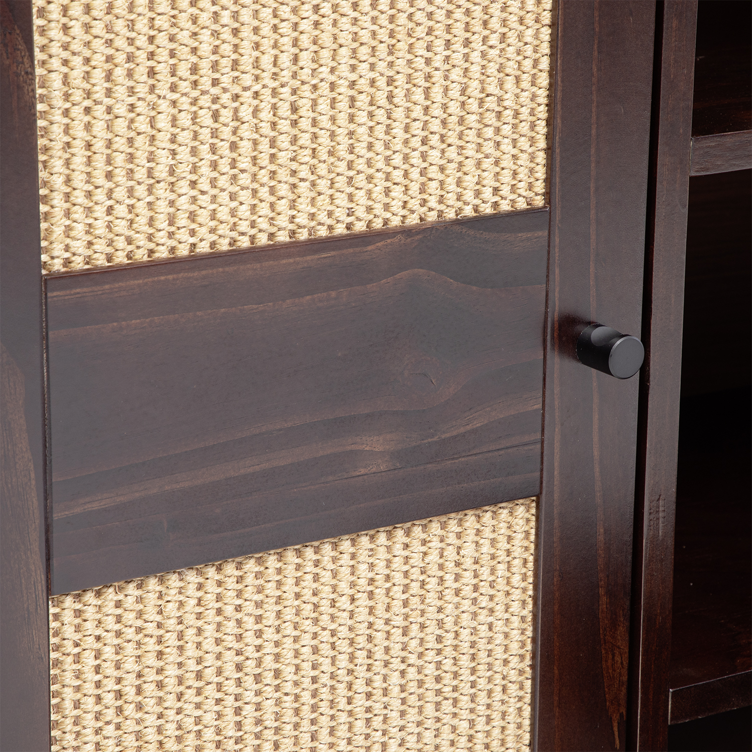 El Buffet Sisal color canela combina puertas, repisas y cajones en un diseño funcional que incluye aplicaciones en sisal