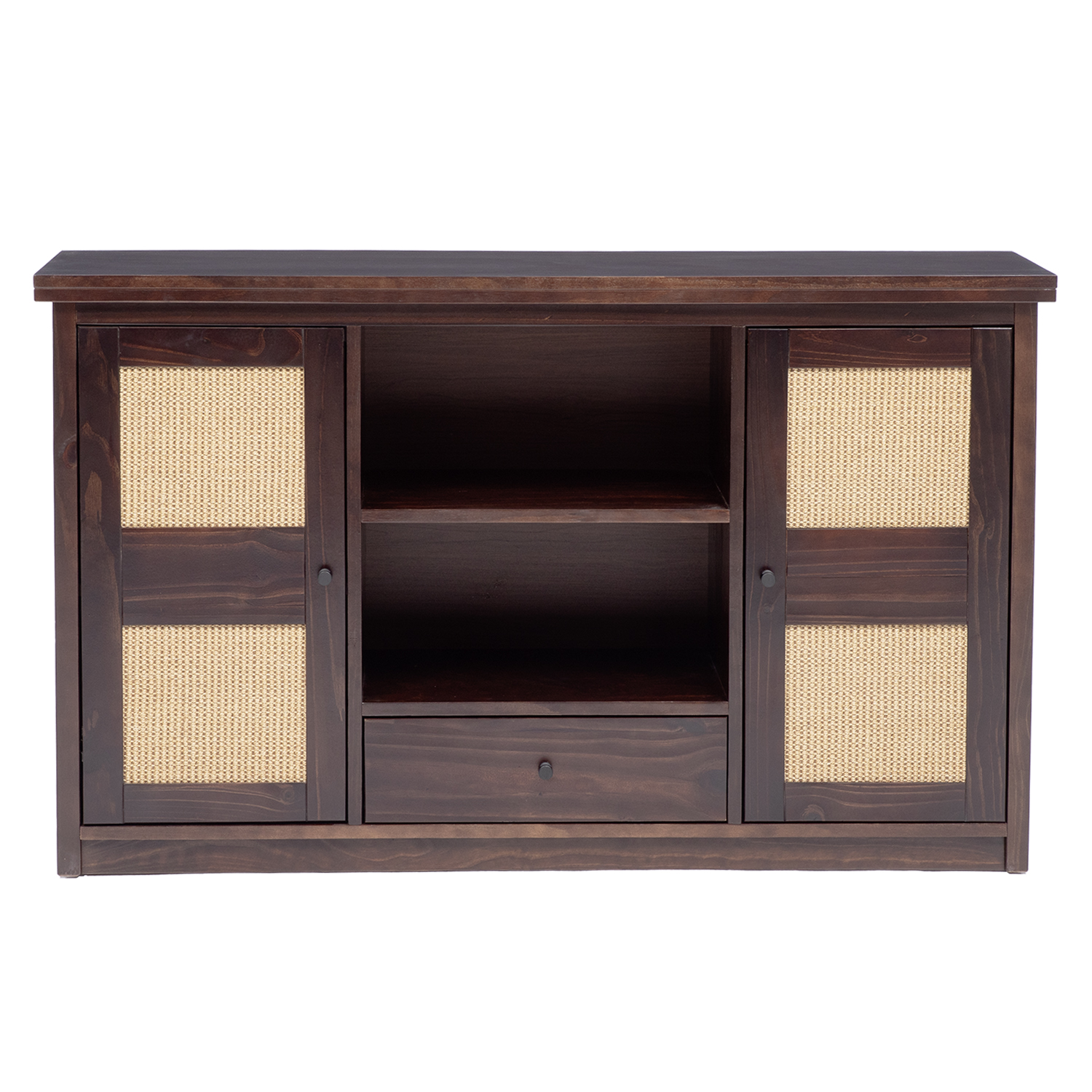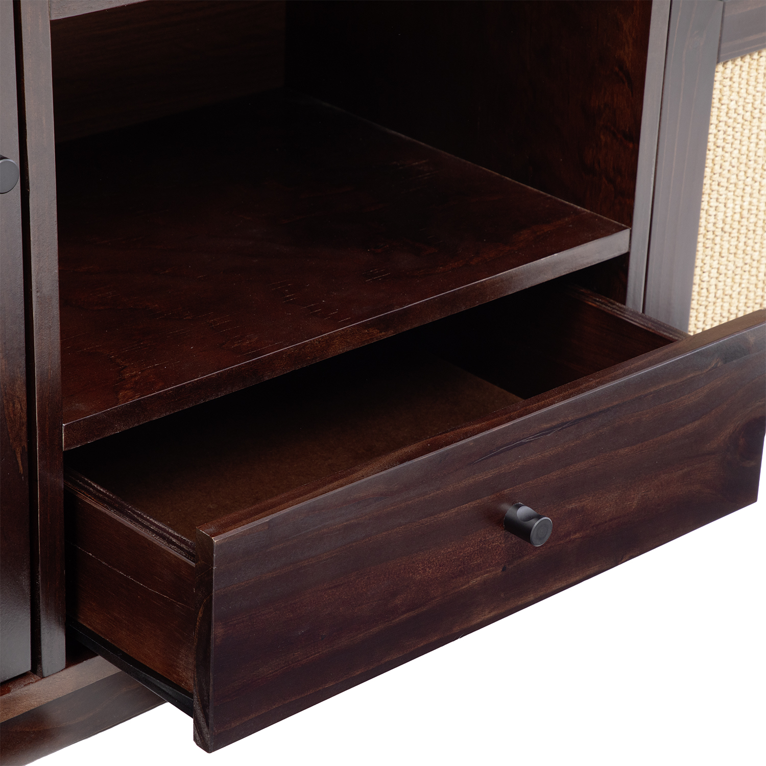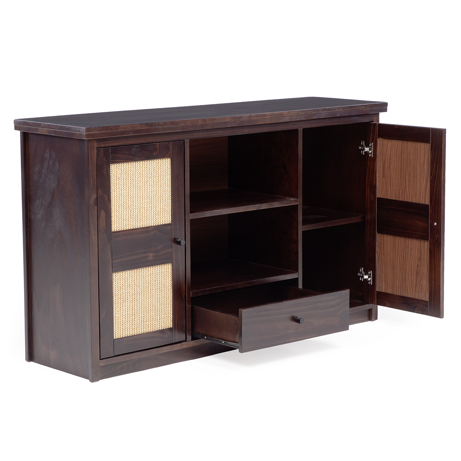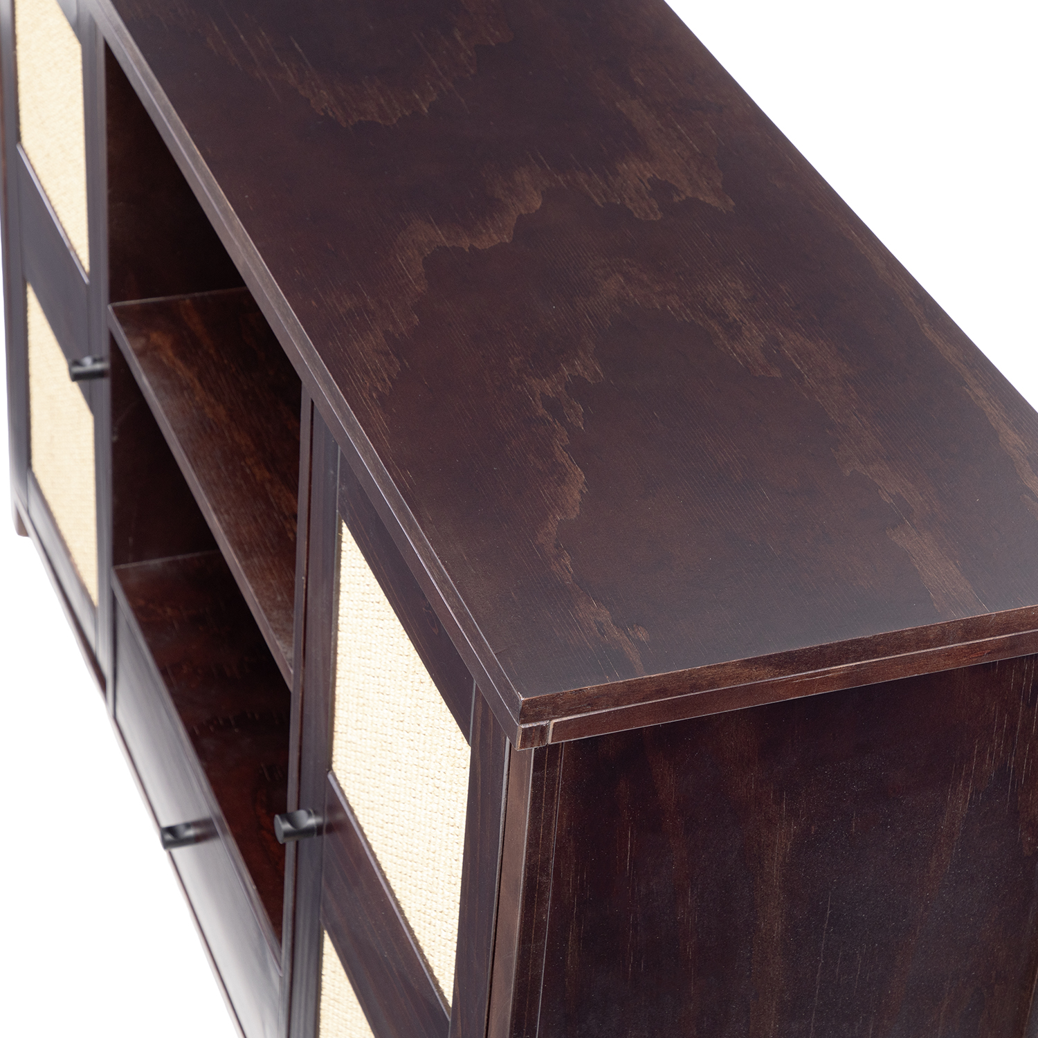 El Buffet Sisal color canela combina puertas, repisas y cajones en un diseño funcional que incluye aplicaciones en sisal