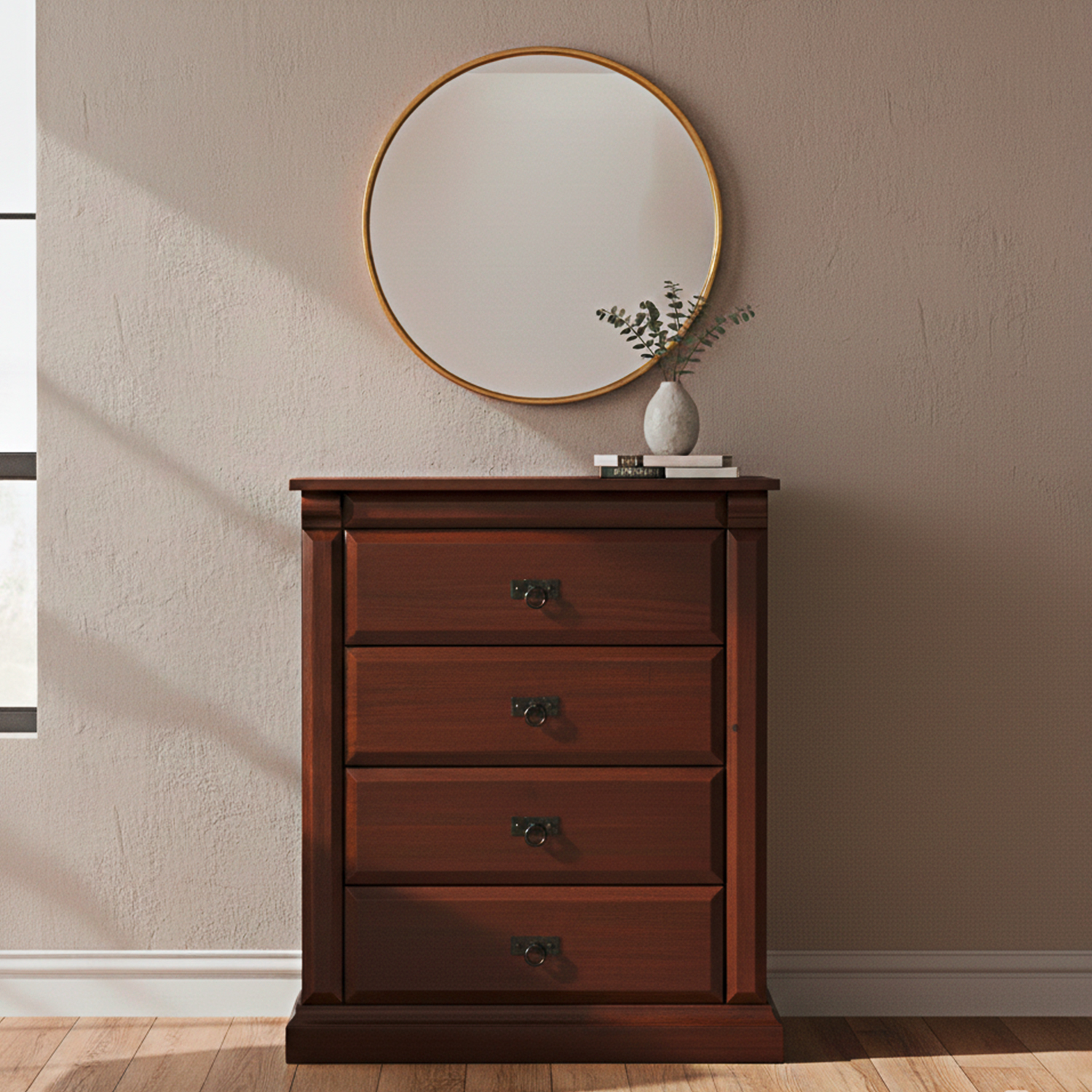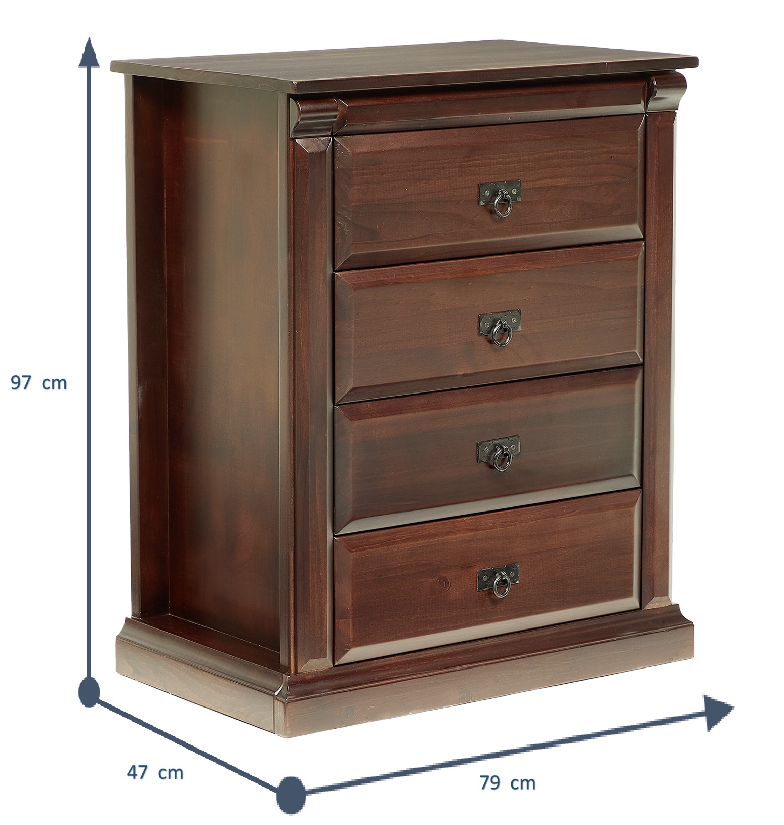 La Cajonera New Camberra Chocolate cuenta con 4 cajones amplios y cómodos, perfectos para guardar y tener en orden tu ropa, que con sus dimensiones, hacen de este un mueble perfecto para habitaciones pequeñas y con espacios reducidos.