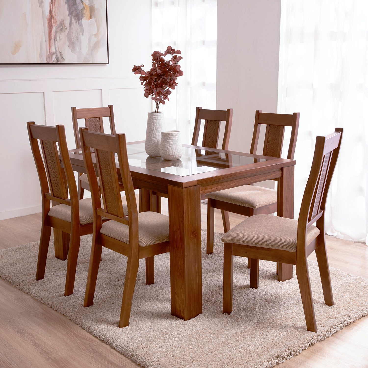 Complementa a la perfección tu hogar con este moderno comedor. Dale un toque de elegancia y sofisticación a tus espacios familiares con este Comedor New Malaga.