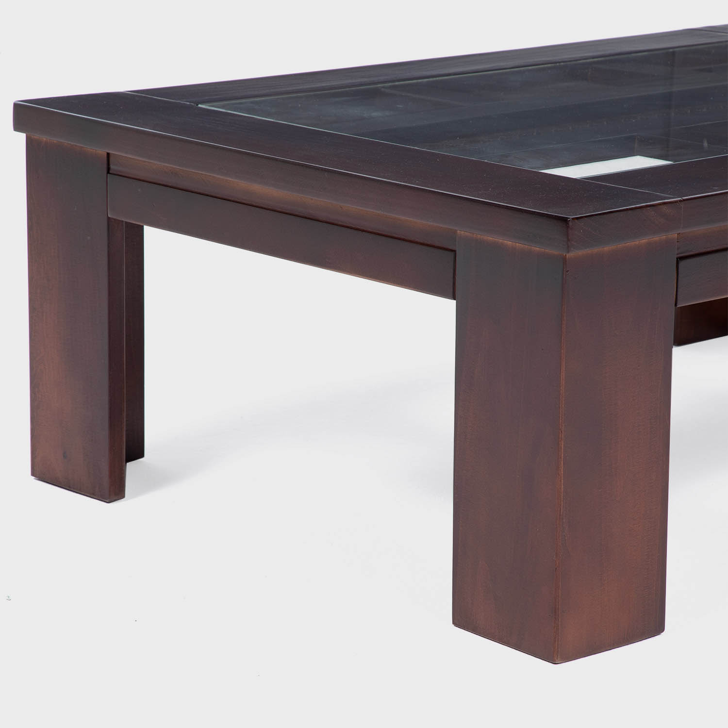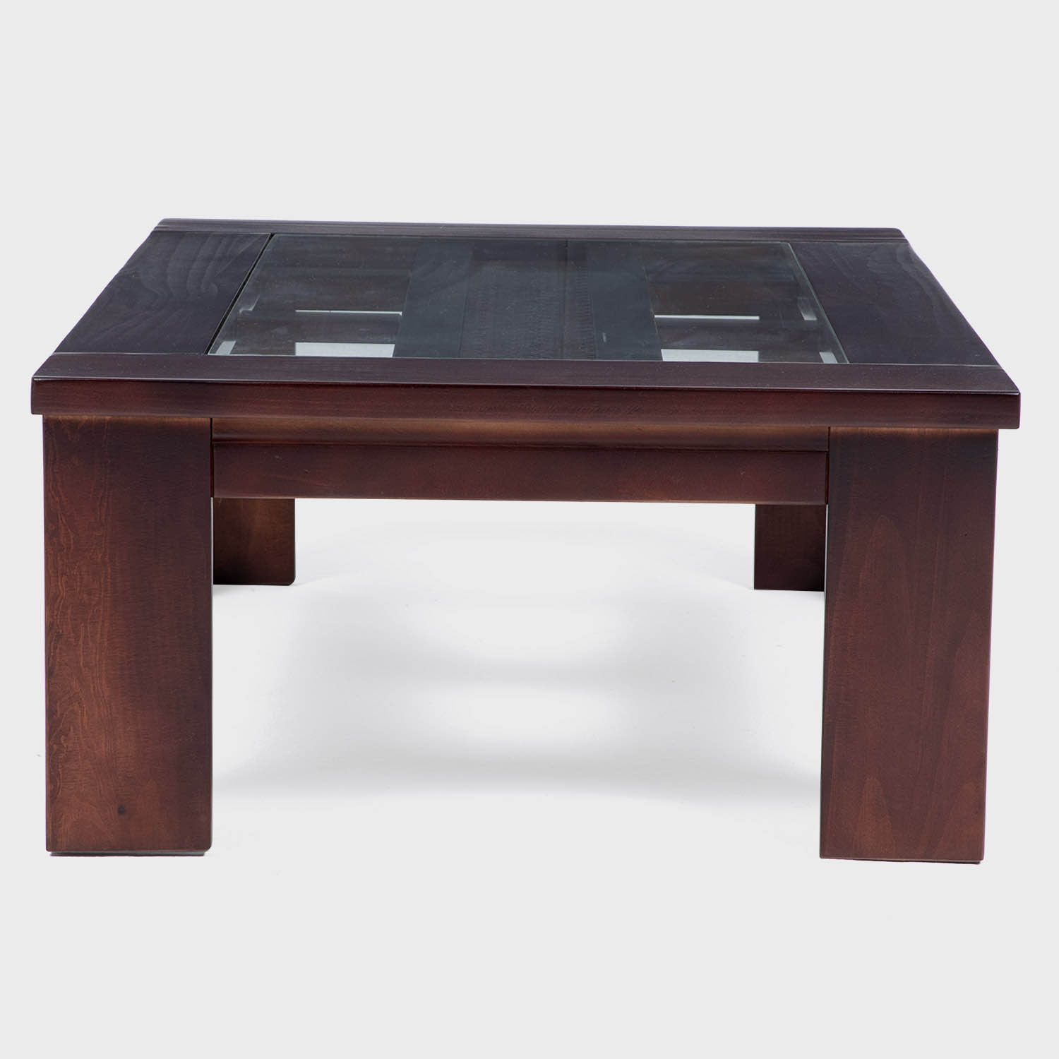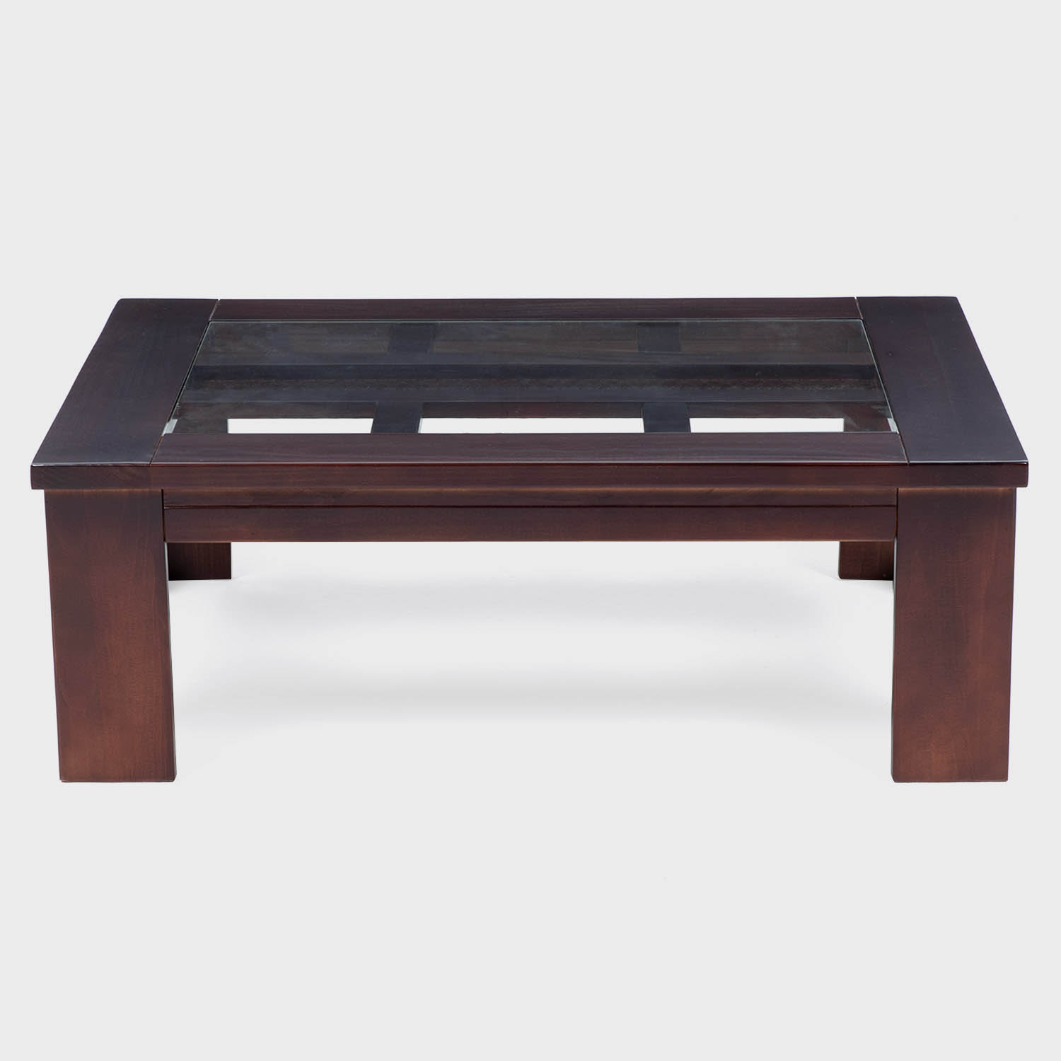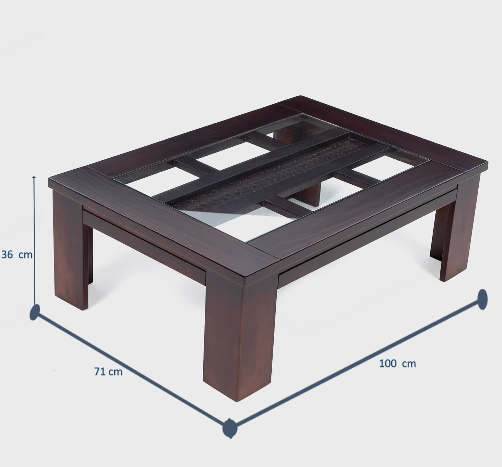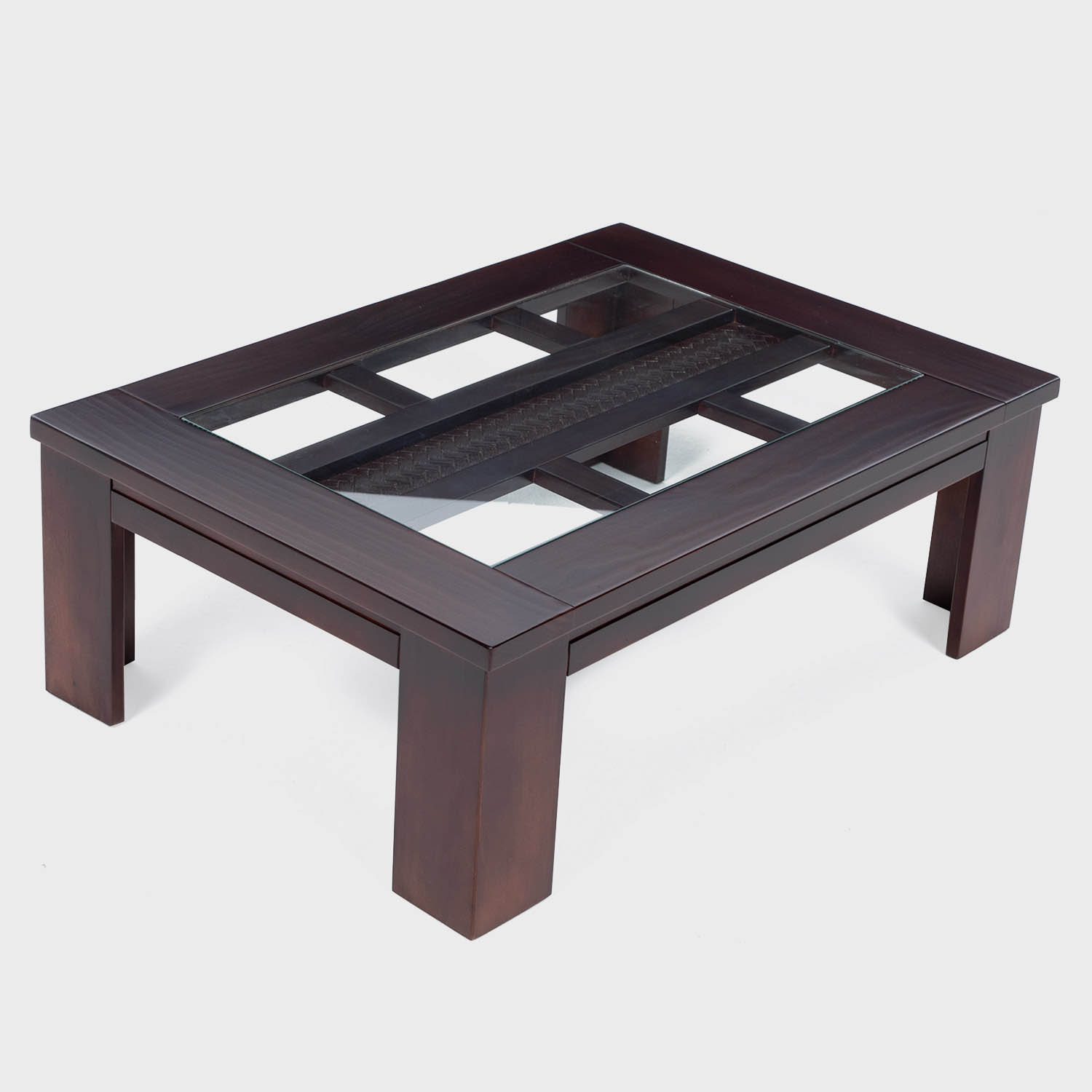Mesas de gran calidad y diseño moderno y elegante, con detalle de textura ratán y vidrio en la cubierta. Fabricación en madera sólida de pino radiata. Color canela.