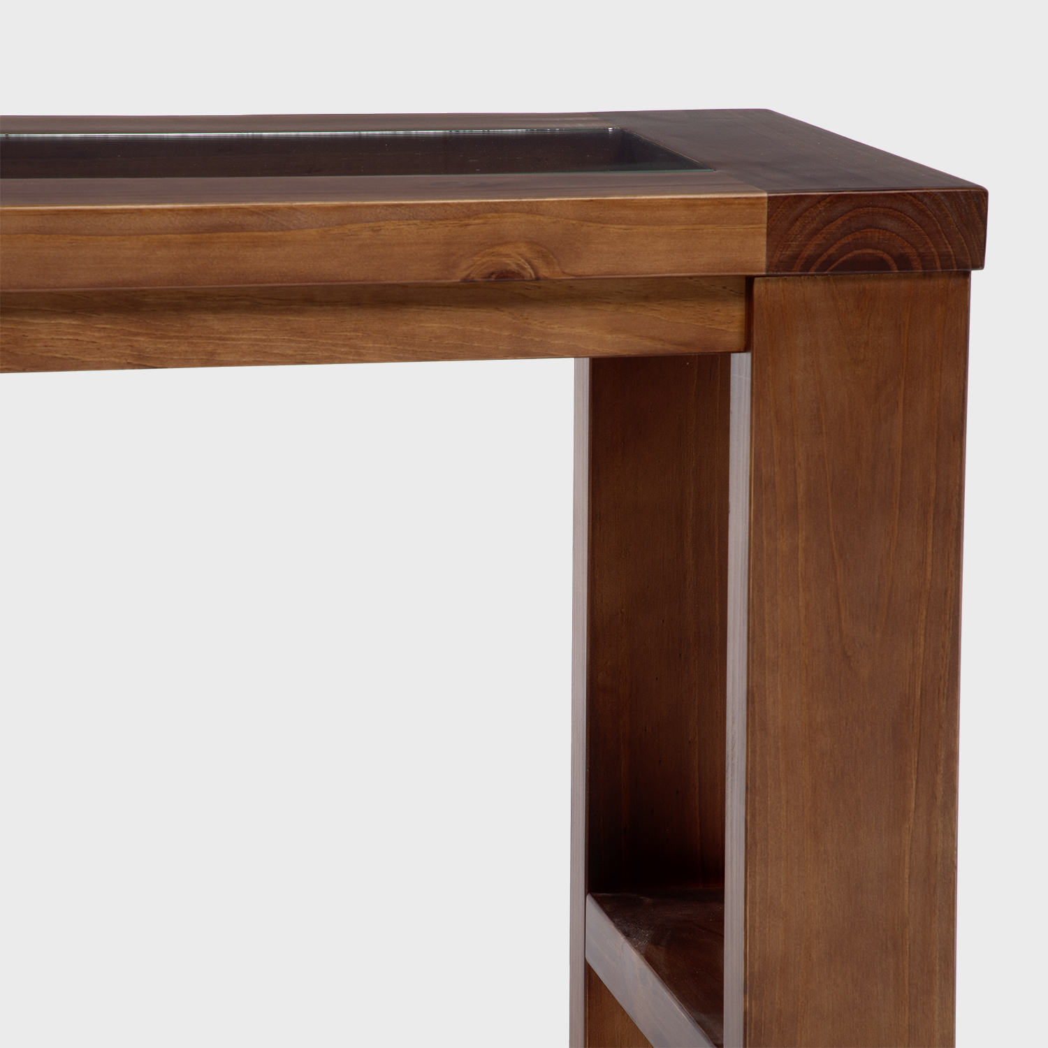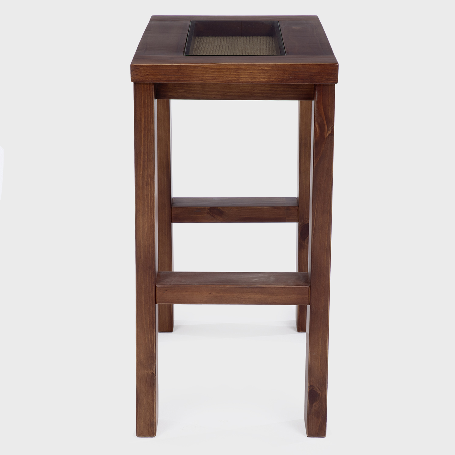 Mesas de Arrimo de gran calidad y diseño moderno y elegante, estructura madera sólida y cubierta de vidrio que permite ver aplicación de tapiz sisal natural.