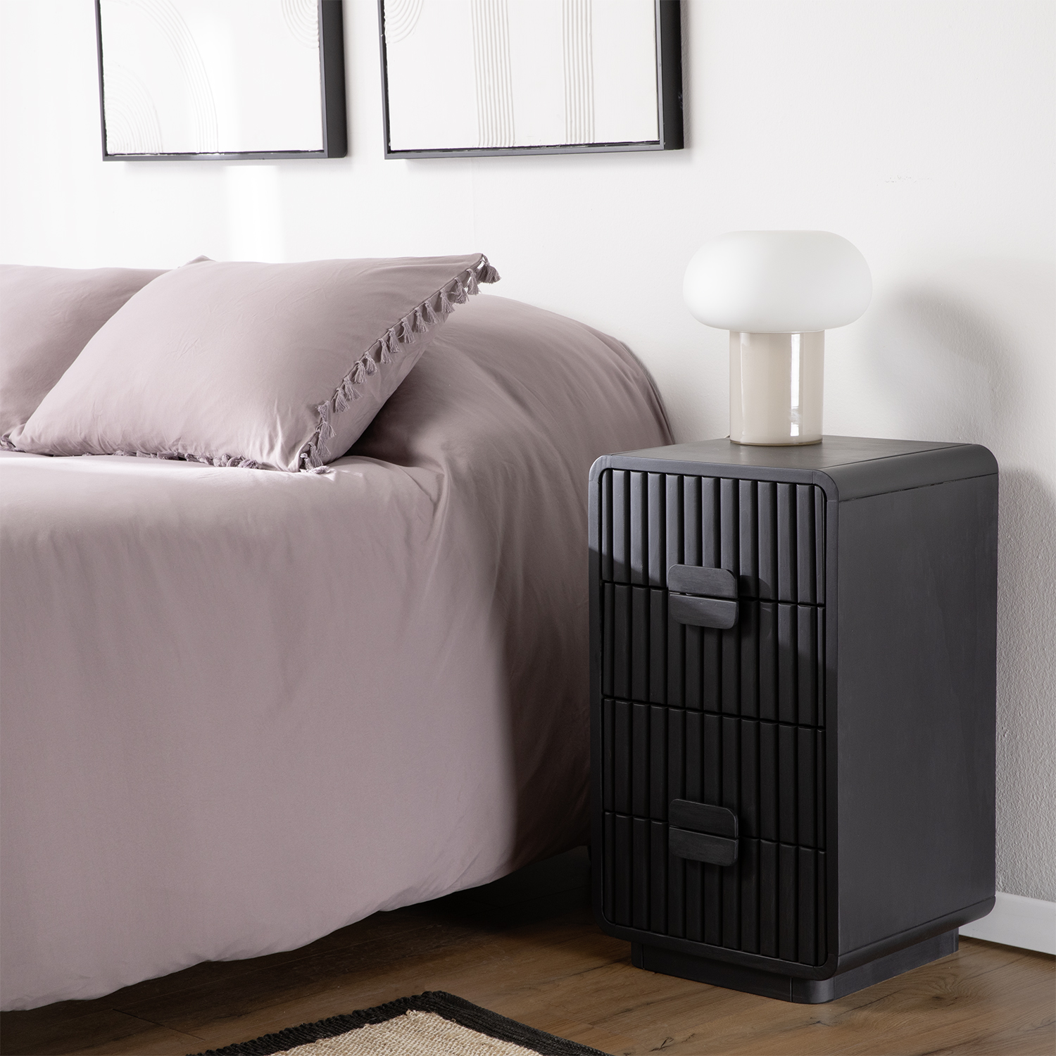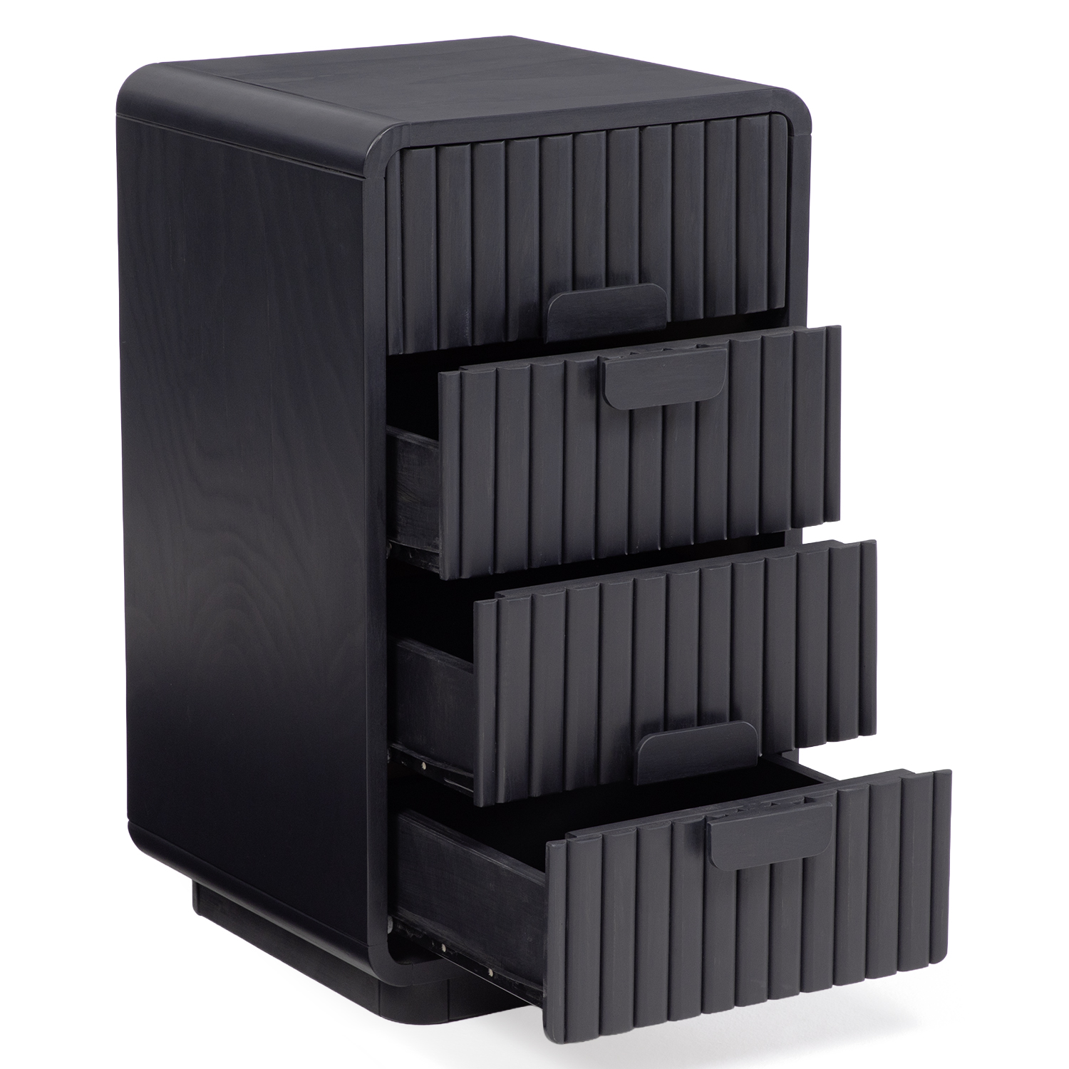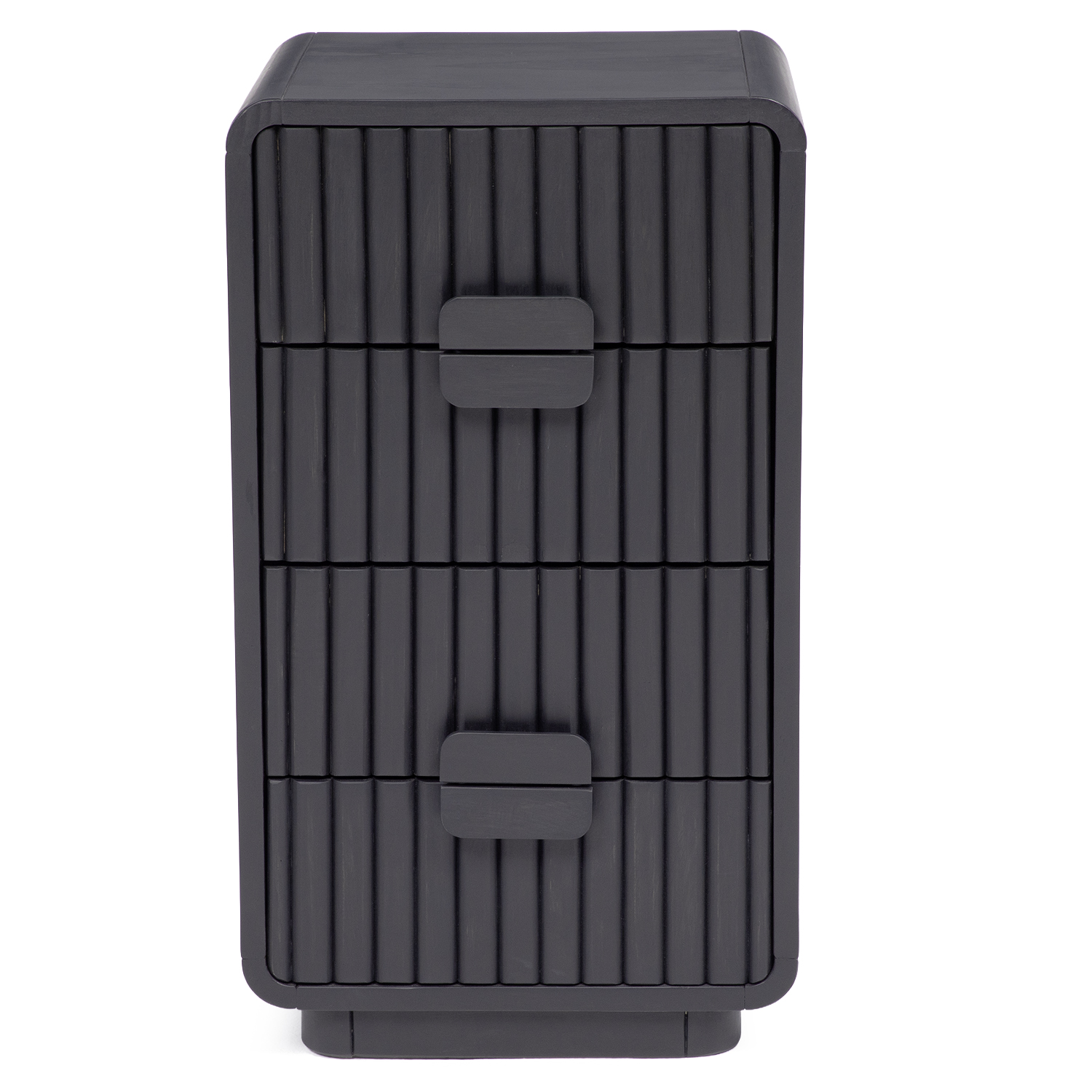 Velador alto, con estilo moderno y de gran calidad, diseño elegante que destacará en cualquier dormitorio. Estructura sólida con 4 cajones y detalles trabajados en madera.