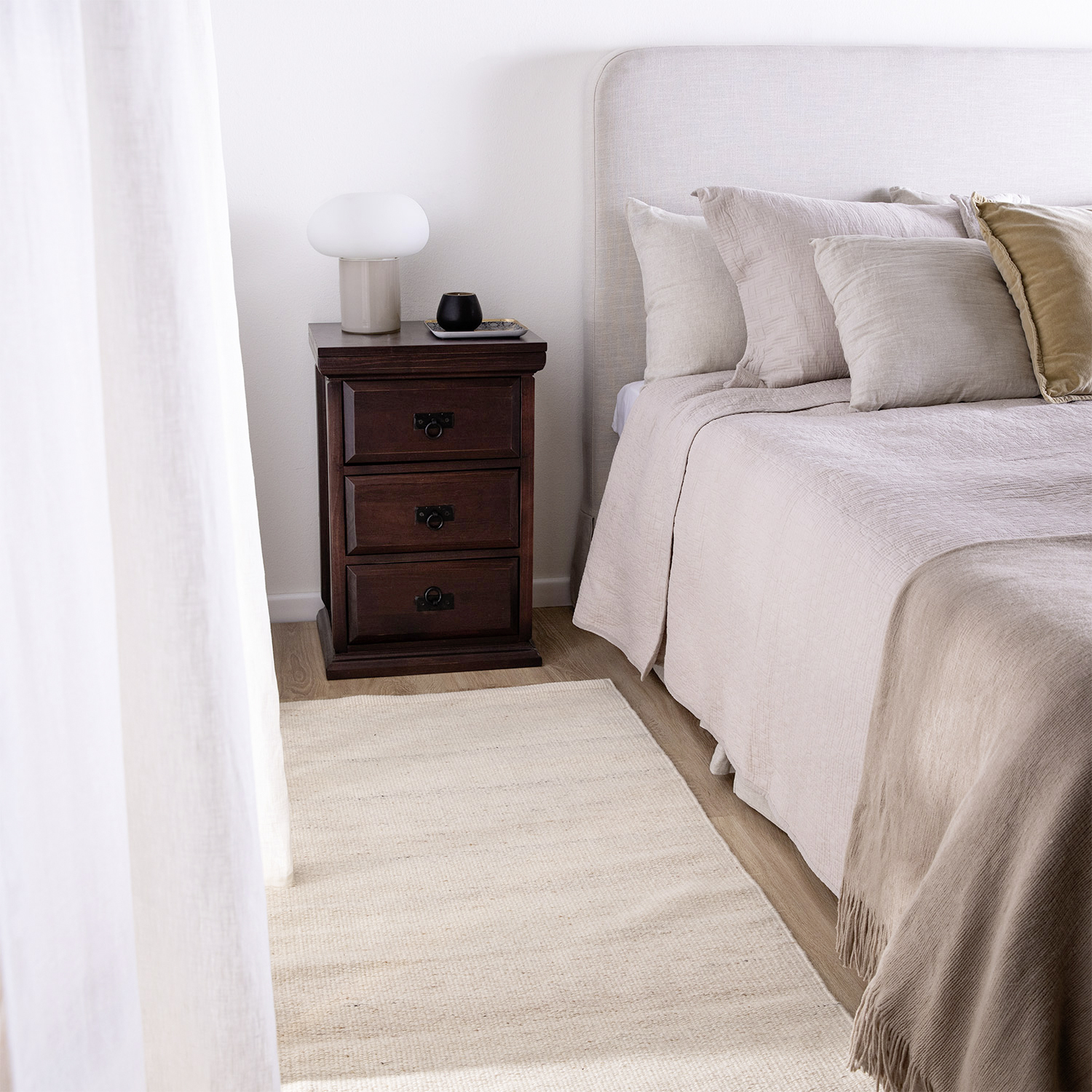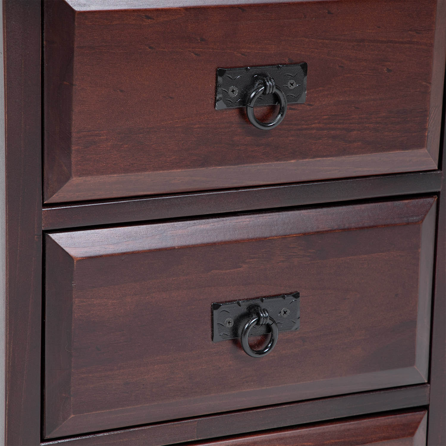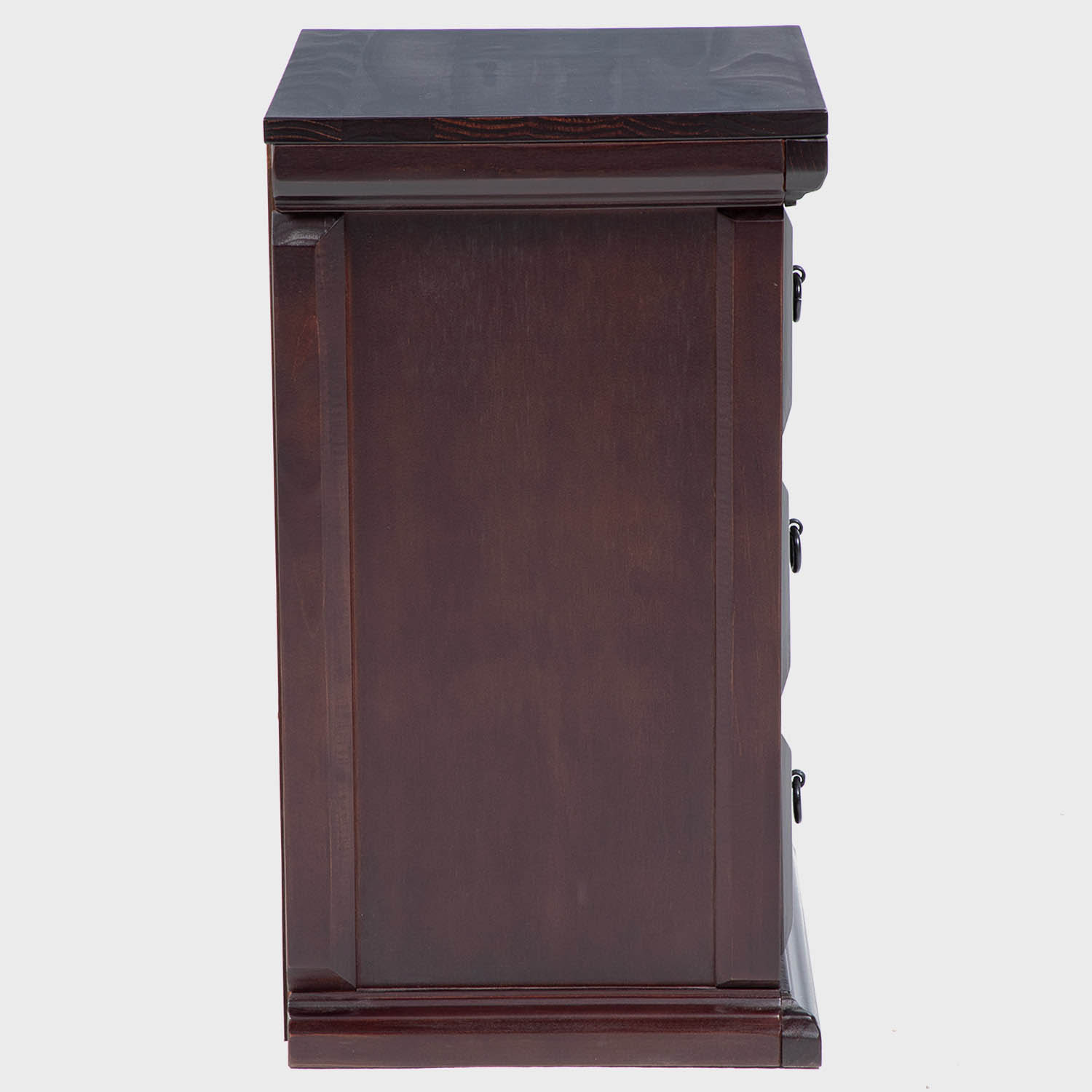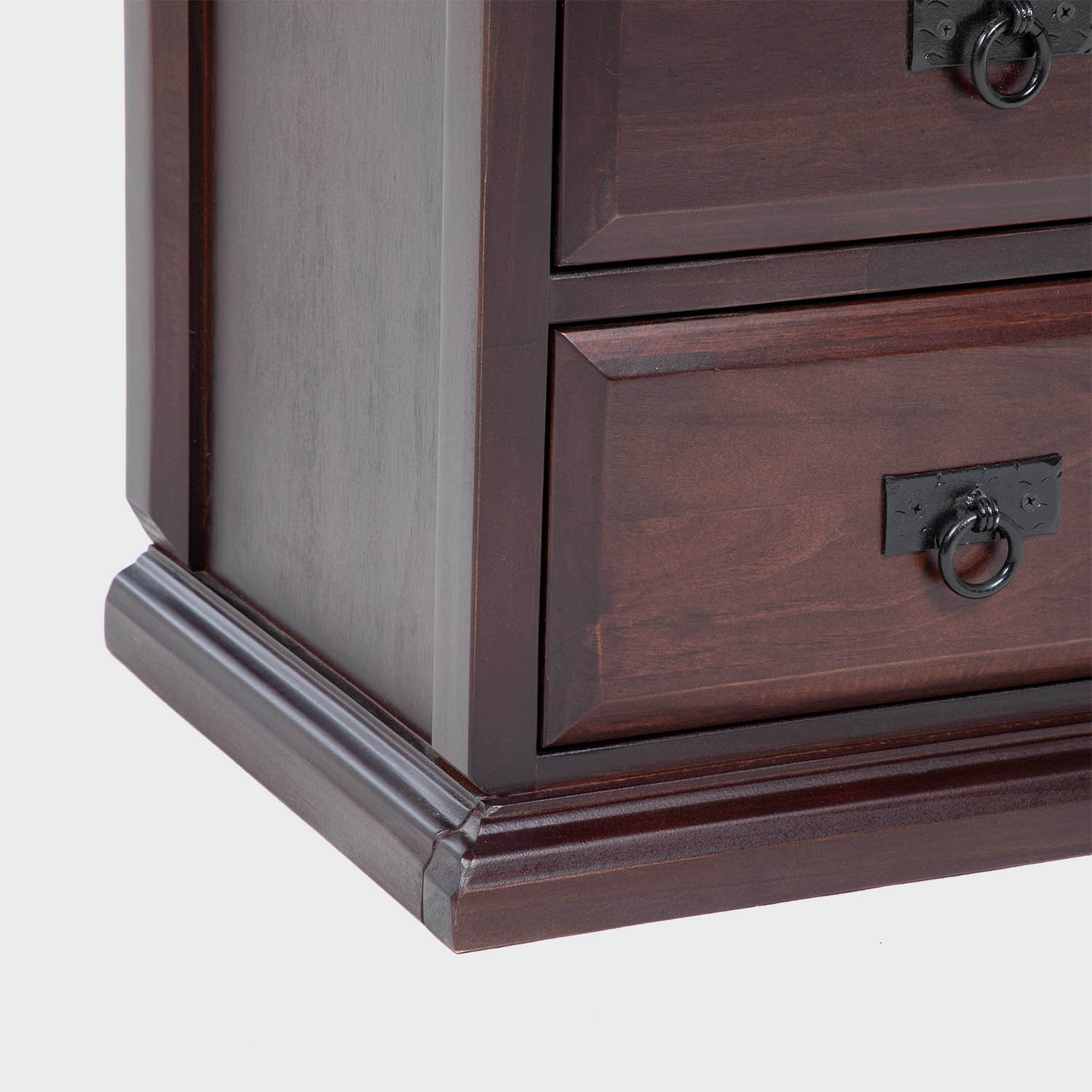 Velador alto, con estilo tradicional y de gran calidad, diseño elegante que destacará en cualquier dormitorio. Estructura sólida con 3 cajones con herrajería rústica y detalles trabajados en madera.