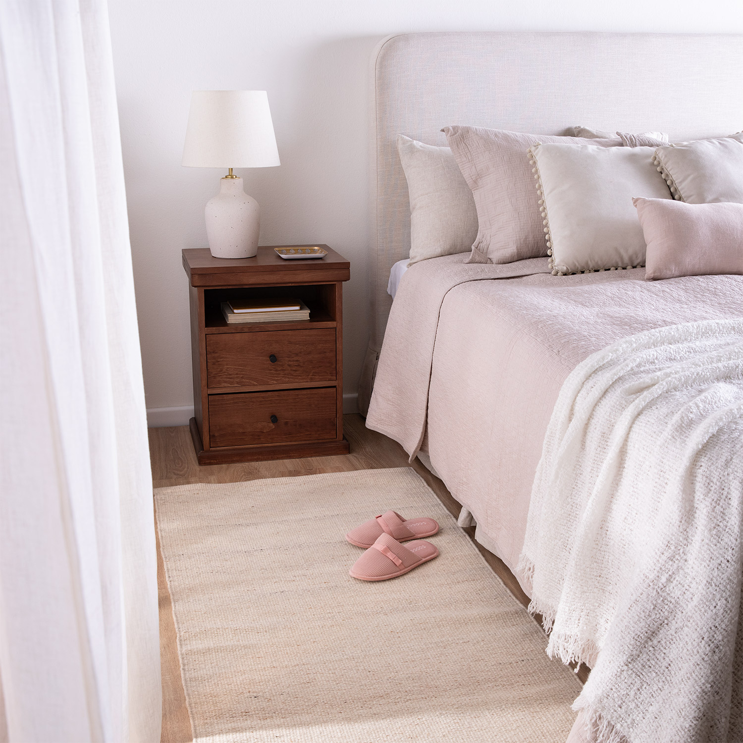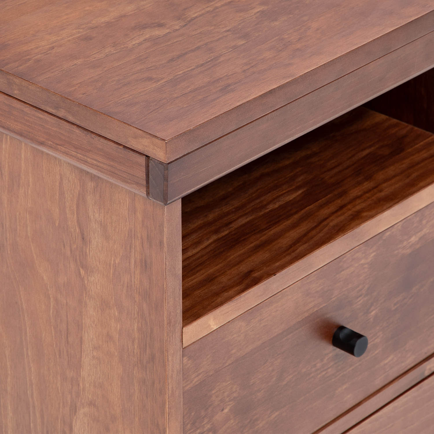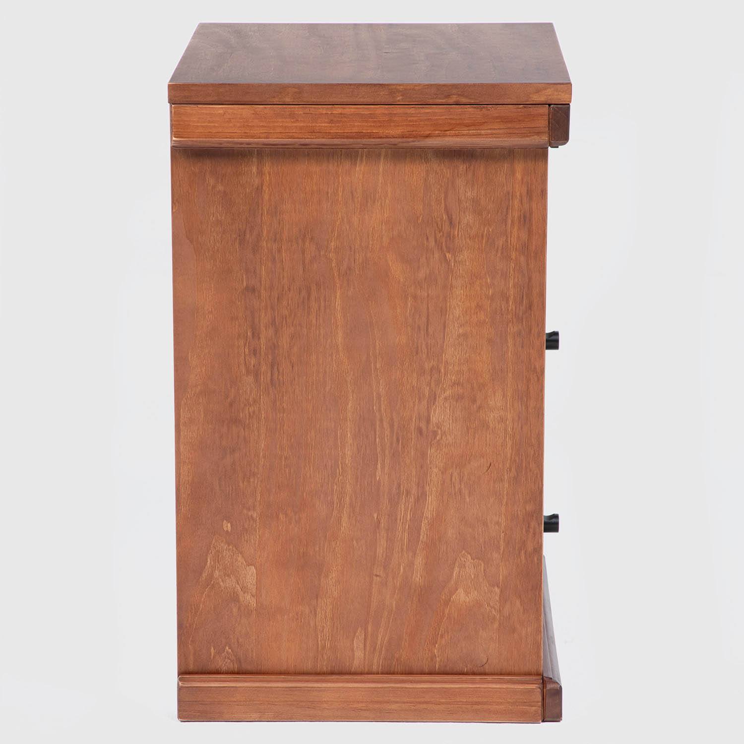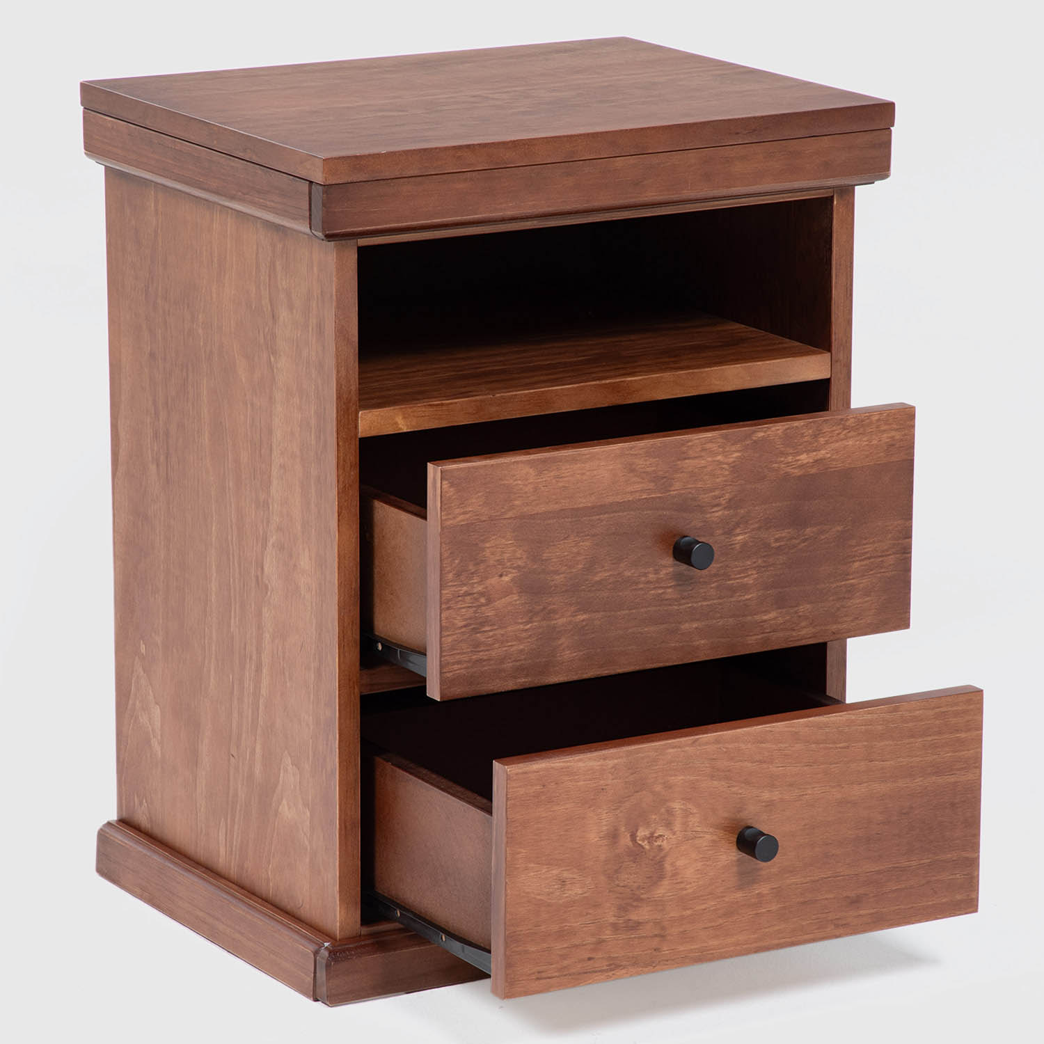Velador alto con estilo tradicional. Incluye 2 cajones amplios con tiradores metálicos, espacio superior que otorga funcionalidad. Estructura de gran calidad, fabricada en madera sólida.